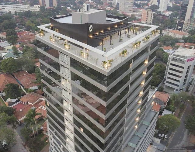 Edificio corporativo de 16 pisos que cuenta con un 100% de ocupación, ubicado a pasos de los centros comerciales, bancos y avenidas más importantes, en el corazón del eje corporativo de Asunción.