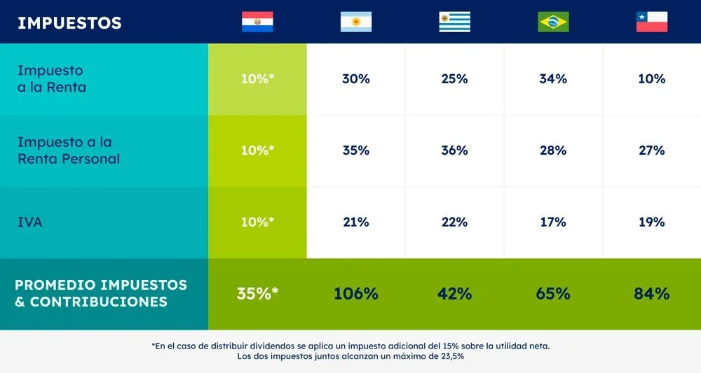 Paraguay posee el régimen tributario y de beneficios fiscales más competitivo y simplificado de la región.